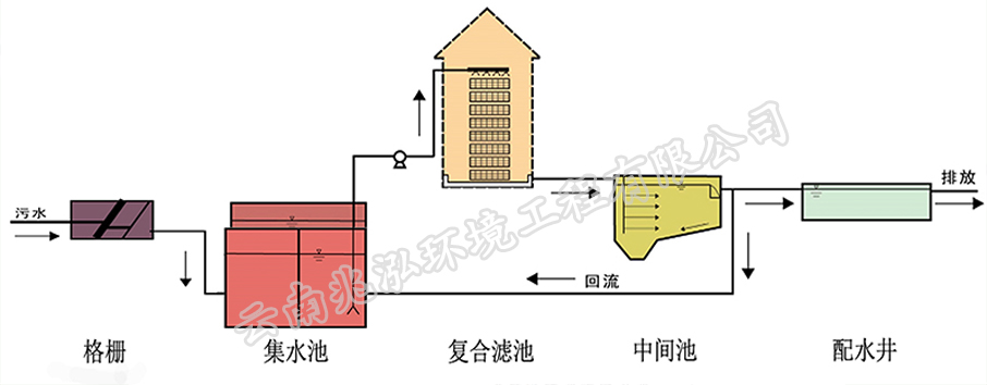 (1)工艺原理:模块化分层生物滴滤池属于生物膜法污水处理工艺范畴,主要由集水池、复合滤床、中间池、人工湿地等部分组成。通过特殊强化滤料进行生物和生态处理实现污水达标处理。 (2)工艺特点:该工艺具有处理效率高,结构简洁,建造成本低廉,低能耗(仅水力提升,无其他能耗),操作管理简便,运行维护费用低和占地小等多方面的优点。特别适合于具有水量较小、水质水量日变化较大等特点小规模污水处 (3)出水水质:出水稳定达到《城市污水处理厂污染物排放标准》(GB18918-2002)一级B标。 |
